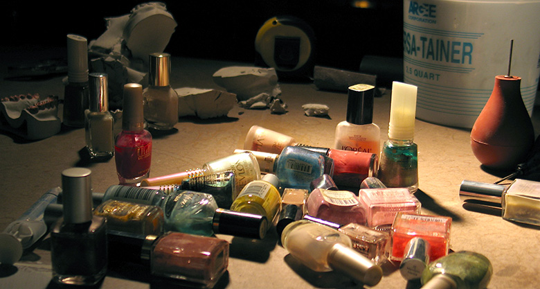 I also pulled out the fingernail polish and painted some teeth I casted forever ago.