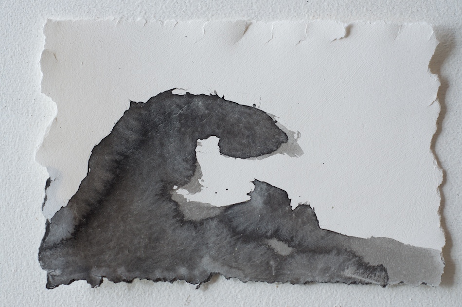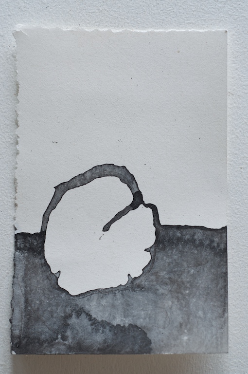I also did some sketches with ink and water. The color from my favorite one (which sorta looks like a dong) came from the unwashed interior of the squeezie thing with which I applied a big puddle of water to the paper. Once the puddle had a shape that worked, I added black ink by touching a wooden, ink-saturated skewer tip to the surface. I really like the results.