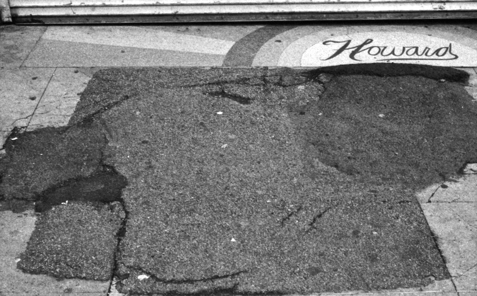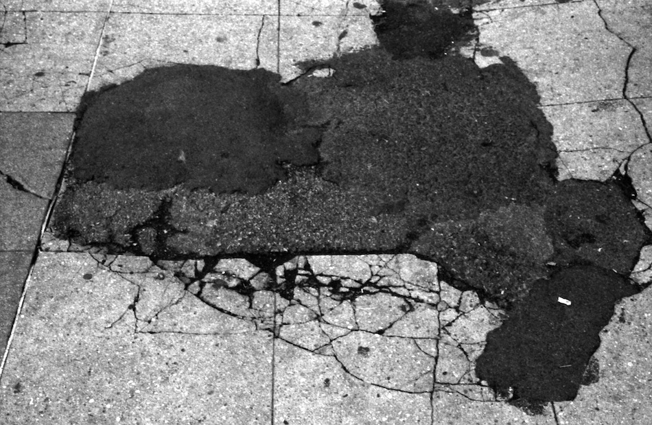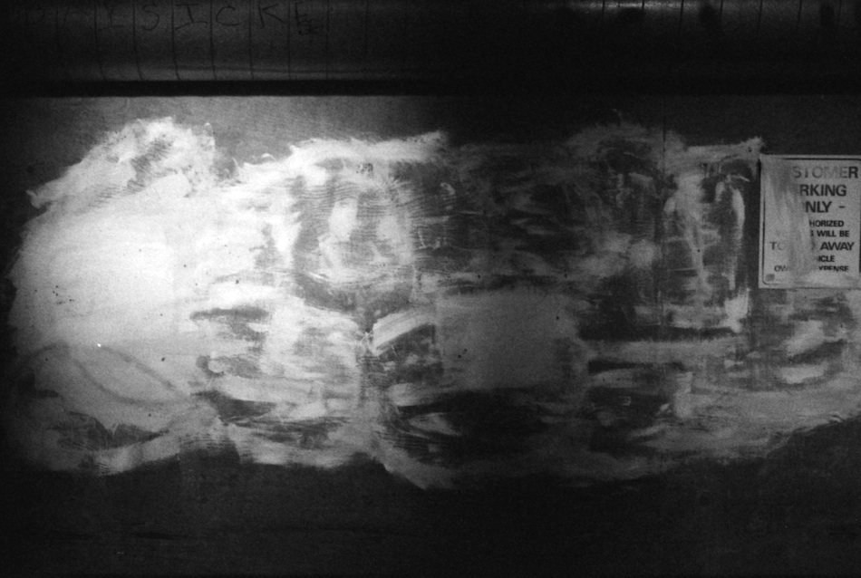 I haven't been able to get to the studio for the past two weeks. I've been using my old Nikon with b&w film to fill in the gaps. This is what I've been looking at lately, pothole/wall fills and attempts at covering up graffiti.