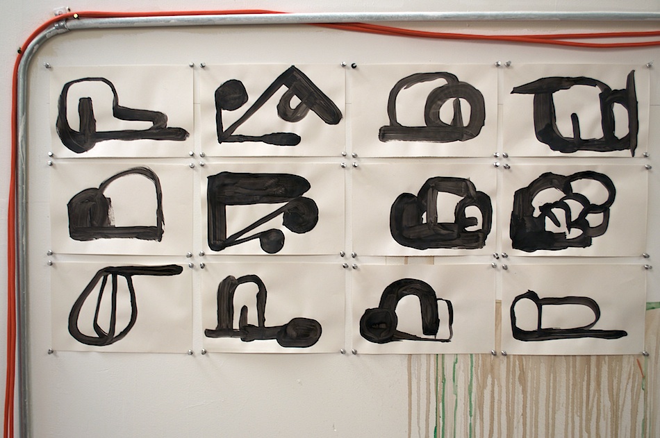 Needing to get some things off my mind, I tore down some sketchbook paper and started drawing whatever came out. Together they look like hieroglyphics but as I drew them they were just forms and compositions that had been swimming around.