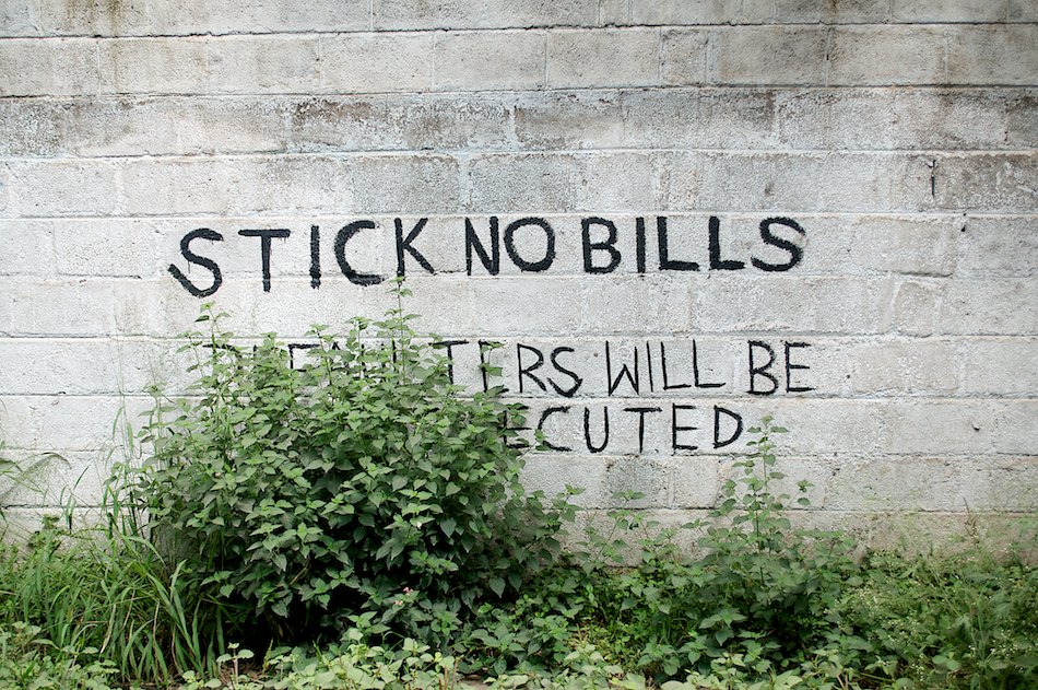 Some of the language differences amused me. "Stick" felt so harsh, while the below text reading "Defaulters will be Prosecuted" felt a bit formal.