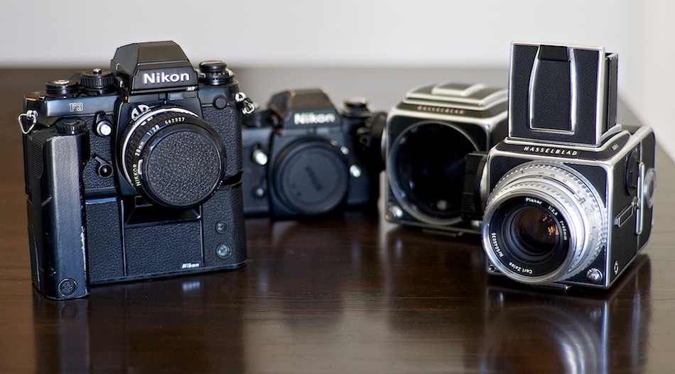 I understand the Hasselblad, but the Nikon is a tank. I originally bought it from friend and skateboard photographer Nick Accurso in the late 1990's. That thing took a beating with him. But with me, if it falls off a table onto a wooden floor/onto a street in a padded bag and it's done? The advance gear is probably just jammed, but the cost to fix it was the same as the used replacement, and the replacement is in waaay better condition.